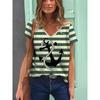 Stripe Graphic 3D T Shirt Women Summer V-Neck Short Sleeve Tops Holiday Casual Tees Woman Streetwear Oversized T-shirt