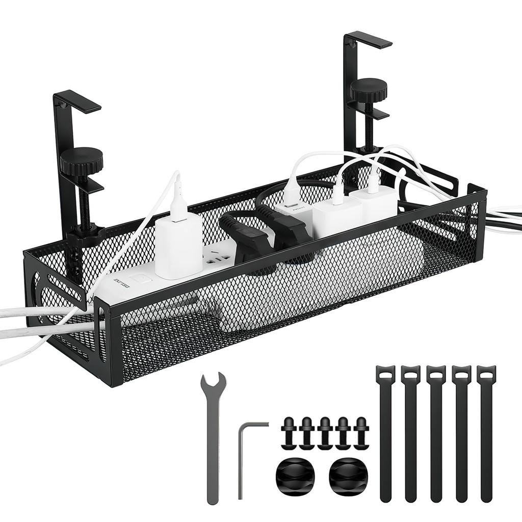 [Excellent Breathability and Durability] The mesh design prevents heat buildup in the power strip, allowing for safe use. The sturdy carbon steel cable tray is waterproof and rust-resistant, and the lacquered surface provides excellent durability. It can withstand a weight of approximately 10 kg, allowing for safe storage even when carrying heavy items. The large capacity design allows for secure organization of various items without the worry of them falling.