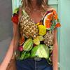 Camiseta Elegante de Talla Grande Moderna y Cómoda con Estampado de Frutas Callejero, Ligera para Mujer con Cuello en V y Manga Corta