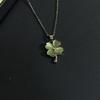 Handmade Natural Dried Flower Lucky Four Leaf Clover Round Glass Pendant Necklace For Women Jewelry