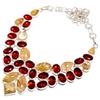 Natural Golden Rutile,Garnet Handmade 925 Sterling Silver Gift Necklace 18" d6J74