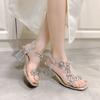 2025 new large size rhinestone butterfly sandals women's head crystal thick heel wind transparent high heel sandals