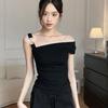 This stylish crop top is designed for women who appreciate a blend of elegance and modern fashion. Made from soft, breathable cotton, it features a unique one-shoulder design that elegantly reveals the clavicle, making it perfect for those who want to add a touch of allure to their outfit. The solid pattern and long sleeves provide a chic yet comfortable fit, ideal for both casual and semi-formal occasions. Whether paired with jeans, skirts, or layered under a jacket, this versatile top seamlessly enhances any wardrobe.