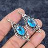 Natural Blue Topaz Gemstone Handmade 925 Sterling Silver Earring 2.01" c4I13