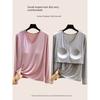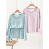 V-neck Modal With Chest Pad T-shirt Women's Spring Inner wear Long sleeve Stripe Bottoming Shirt Thin Casual Plus size Loose Top