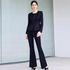 Elevate your autumn and winter wardrobe with this stylish two-piece set featuring a dark plaid design and a quintessentially British flair. The set includes a tailored women's jacket paired with straight-leg pants, both crafted from high-quality viscose material that offers a comfortable and luxurious feel. Perfect for both professional settings and elegant occasions, this ensemble combines timeless sophistication with contemporary comfort.