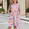 Children's Skirt Round Neck Short Sleeve Princess Dress Fashion Casual Pocket Dress For Girls