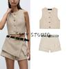 Spring and Summer New Women's Clothing Single-Breasted Flip round Neck Sleeveless with Belt Texture Vest 2132091