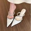 Fashion 2024 Summer New Fashion Rhinestone Pointy Women's Mid-heel Slippers Thin Heels Pointy with Pearl Lightweight High-end