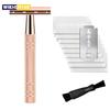 Double Edge Shaving Kit with Stand Blades Precise Grooming Metal Non Slip Handle Retro Manual Shavin