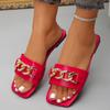 2024 Hot Sale Shoes for Women Basic Women's Slippers Summer Daily Slippers Women Chain Square Toe Flat with Outdoor Shoes Ladies