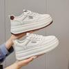 Dexun shoes thick baseplate shoes women's leather surface 2024 autumn new niche Korean version low-top student sports little white shoes tide