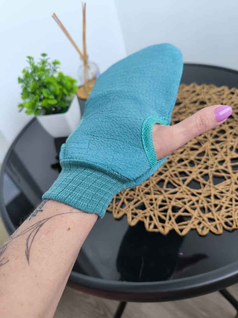 Exfoliating gloves for the shower The glove is well made and excellent. Good for removing dead skin and healthy massage for the body. made of towel. The product is of good quality It arrived to me with fast and secure delivery 📦