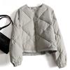 ადრეული შემოდგომის ახალი ქალის ტანსაცმელი მარტივი დიზაინი თეთრი იხვის ბუმბულის ქურთუკი მოკლე თავისუფალი შესაკრავით