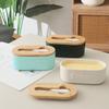 Modern Ceramic Butter Box Fresh-keeping Box with Wooden Cover and Knife Set Butter Dish Home Cheese Box Ceramic Butter Box
