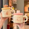3D three-dimensional relief Mug couple water cup lovely bear rabbit animal household ceramic mugs breakfast milk children's Cup