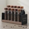 Leeseph Single Dose Coffee Bean Storage Tubes with Walnut Wood Display Stand and Funnel, Dosing Glass Vials with Lids, Best Gift