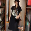 Women's Korean Style Cotton Short-Sleeve Loose Casual Plus Size Long Dress for Summer Maternity and Nightwear