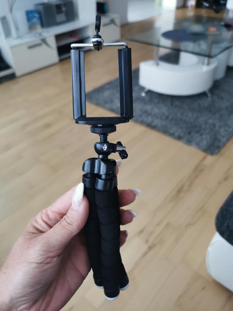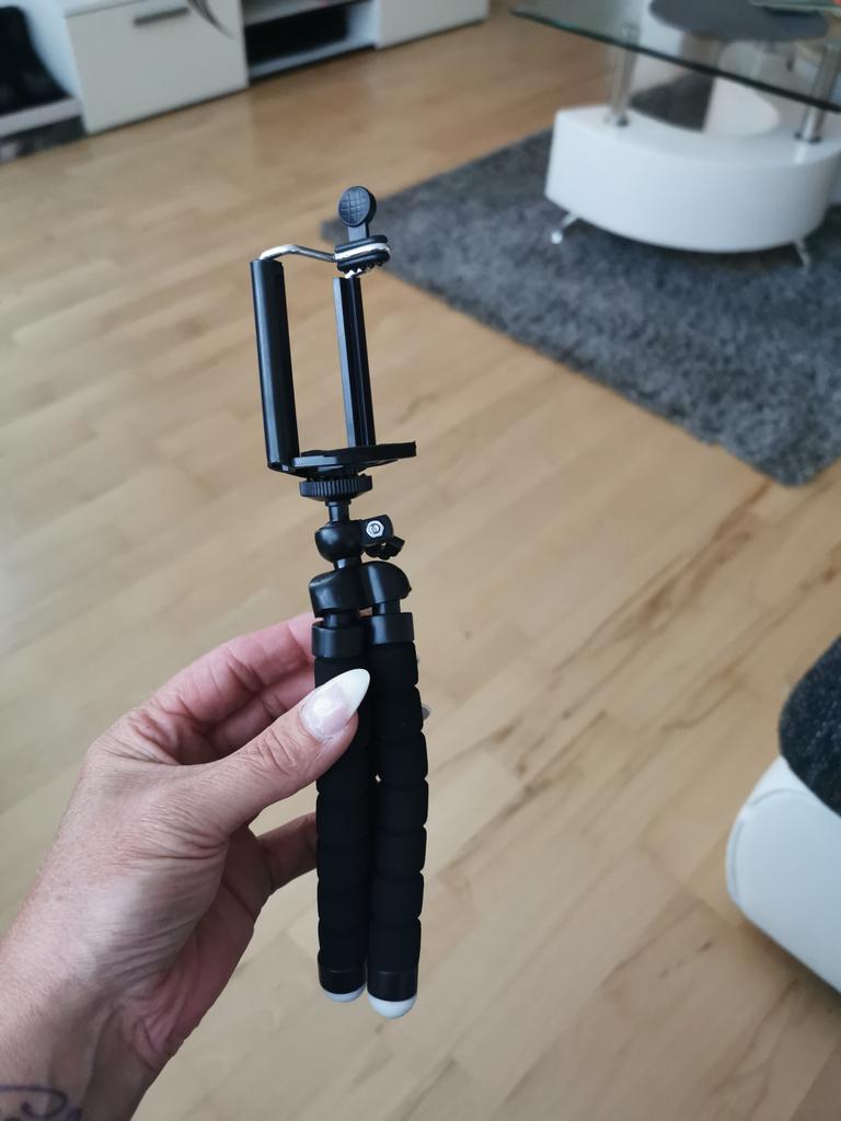 Mobiltelefonen er stabil i holderen. Og armene er fine og fleksible. Måtte skru opp braketten først, men det er greit.
