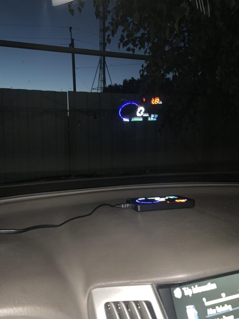 Hvis HUD viser kjøretøyets spenning, drivstofforbruk, hastighet og rotasjonshastighet, er enheten riktig installert.