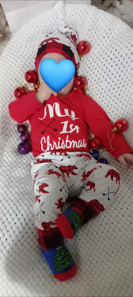 Christmas Baby Newborn First Xmas Romper +bukser+lue klær
