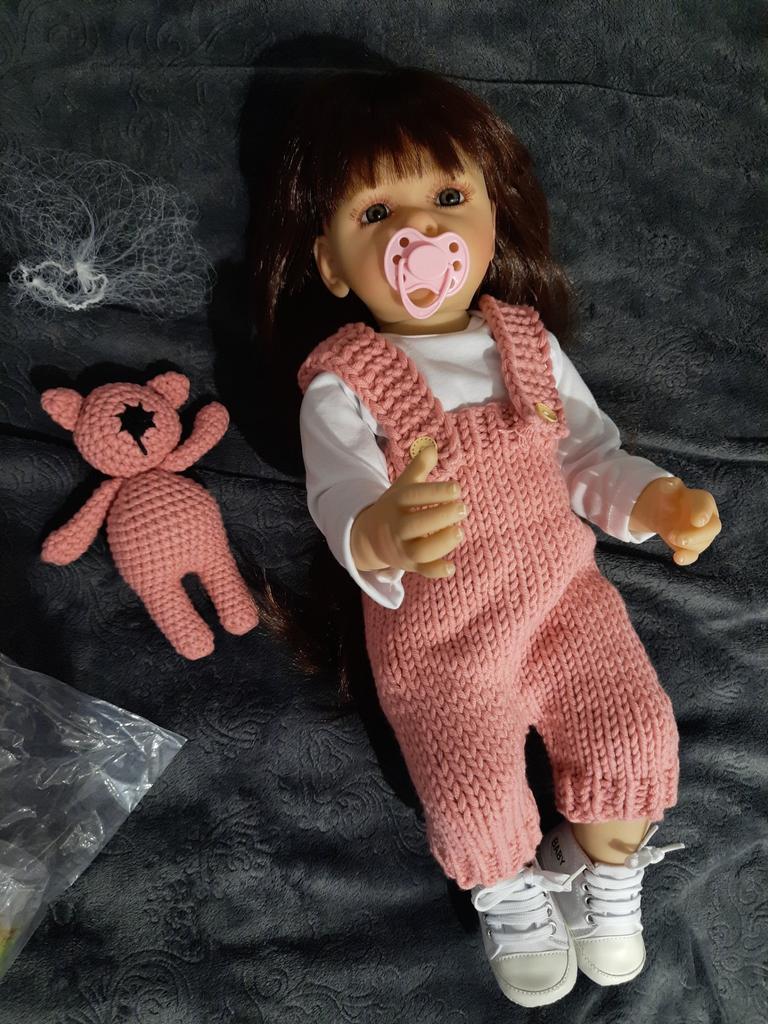 Naturtro gjenfødt baby jente 55 CM 22 tommer dukke myk silikon langt brunt hår Realistisk prinsesse småbarn Bebe bursdagsgave