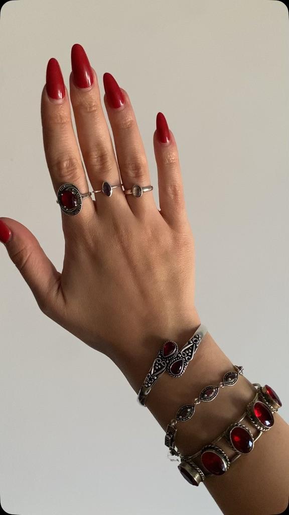 Mosambik granat edelsten håndlaget solid 925 sterling sølv mansjett smykker armring justerbar