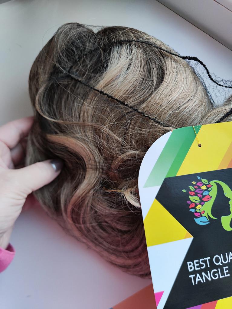 Klassisk parykk av syntetisk hår. Parykken er av god kvalitet, håret ligner veldig på naturlig hår, det er en lugg, vakre krøller. Min farge er den femte i rekken.. Som alltid følger det med en hette for å skjule håret ditt. Inne i parykken er det et nett som kan justeres etter hodestørrelsen, og klemmer for at parykken skal sitte bedre.. Kan børstes, vaskes, krølles, rettes ut ved temperaturer ikke over 140°C. Håret ser fantastisk ut, anbefales til kjøp.