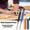 Lang spiss for dyphullsmerking: Vår mekaniske trebearbeidingsblyant har en 45 mm spiss designet for å markere dype hull og smale områder nøyaktig. Enten du jobber med tre, stein eller andre overflater, er byggeblyantene våre perfekte for trebearbeiding, konstruksjon, snekkerarbeid og arkitektoniske oppgaver. Det svarte blyet er egnet for lyse overflater, mens den rød/gule voksen er ideell for mørke overflater, og gir allsidighet for alle dine merkingsbehov.