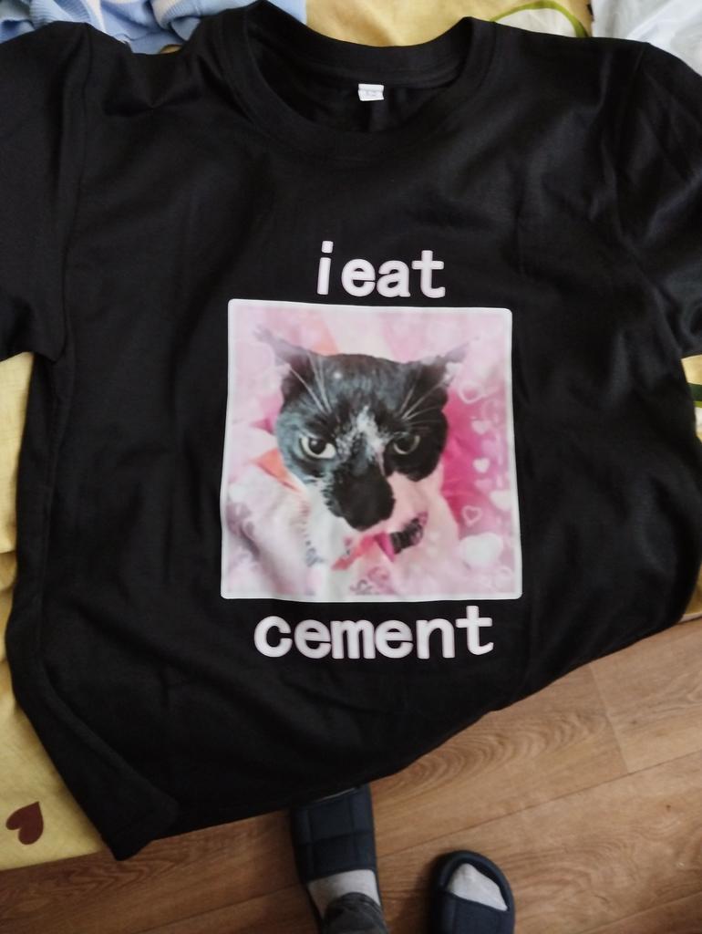 I Eat Cement Cat Morsom grafikk T-skjorter med trykte t-skjorter Herre Sommermote for kvinner Uformell T-skjorte i bomull Streetwear T-skjorter med korte ermer