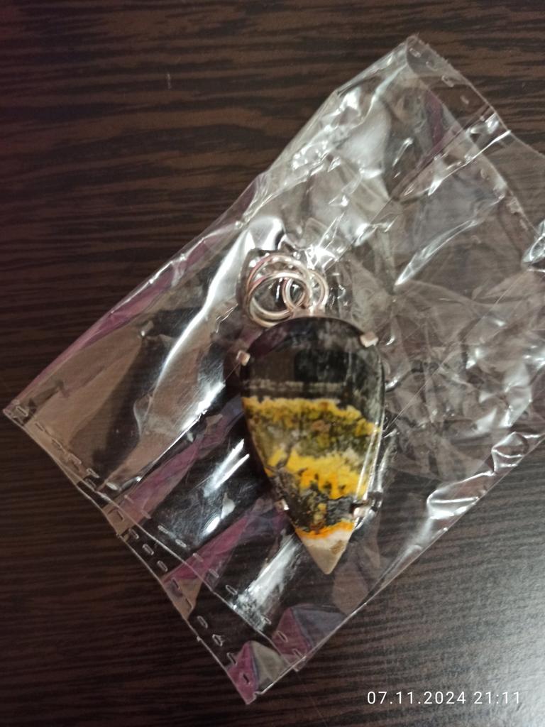 Bumblebee Jasper Gemstone 925 Sterling Silver Jewelry Pendant 2.29"