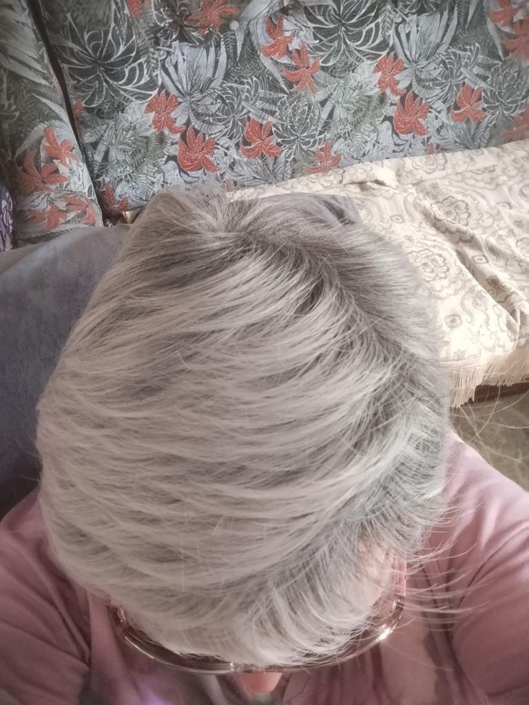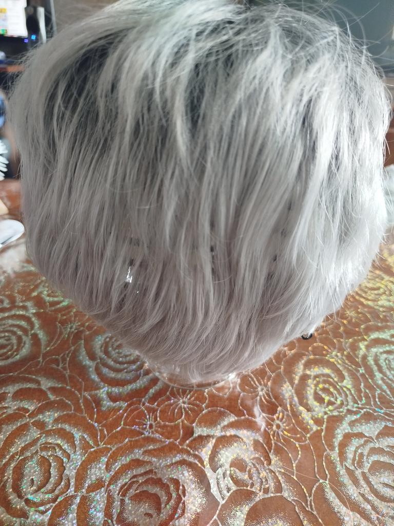 Takk Jum og selgeren. Parykken er en vakker sølvfarge, frodig. Pixie-hårklipp. Jeg anbefaler produktet og selgeren. Jeg likte virkelig produktet. Et parykknett kom som gave.