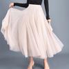 Elastisk midje 3 lag mesh langt tyllskjørt Vår høst Elegant vintage høy midje ballkjole gasbind Tutu-skjørt