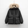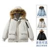 Women's Autumn and Winter Solid Color Hooded Fur Collar Short Thickened Large Pocket Loose Parka Jacket 5 Colors