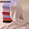 IHUASU High-neck Jumper Women's Autumn and Winter Pullover Short Section of Bright Silk Hundred with Wool Knitted Bottoming Shirt Underwear Tops