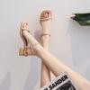 fashion One-word Buckled Sandals Women's Fairy Style Fashion Open-toed Square-toed Thick-heeled Roman Medium-heeled High-heeled Shoes