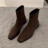 Vintage Stylish Women's Short Boots 2024 Autumn/winter Single Boots Thick Heels Slim French Velvet Surface Ankle