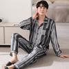 Men's Spring and Autumn Ice Silk Loungewear 2 Piece Long Sleeve Pajama Set Summer Thin Jacquard Houndstooth Home Wear