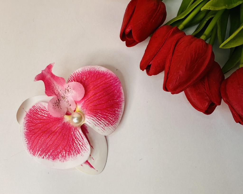 Nydelig hårsmykke.,Phalaenopsis blomst. Produktet finnes i 10 varianter. Jeg valgte det i hvitt og er veldig fornøyd med det.. Veldig fin farge! Alt som beskrevet. Leveringstiden til Tyskland var 24 dager. Dessverre kom det ødelagt frem. Synd) Takk Joom og selgeren! 5 stjerner 🌟 🌟 🌟 🌟 🌟