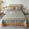 3Pcs Simple Geometric Plaid Bed Sheet Set 100% Cotton Skin-friendly Queen Size Bedding Set Thickened Flat Sheet with Pillowcases