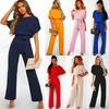 Vår og Sommer Dame Mote Knyteknapp Kortermet Jumpsuit