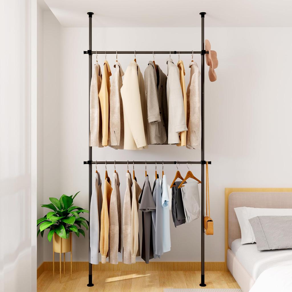 [Sturdy Hanger Pole] The hanger rack tension rod is highly stable and perfect for earthquake prevention. It can be used safely even during an earthquake, and there is no need to worry about it falling over. The spring compression system provides excellent stability. In addition, since it is fixed vertically to the floor and ceiling, it is easier to clean than a free-standing type with a support rod at the foot. However, please note that the support pole must be installed vertically to the floor. If it is installed at an angle, it may not be strong enough and may cause it to fall over. We recommend that you check it visually from different angles and distances, or use a level to check.