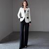 This stylish suit set is designed for women who appreciate elegance and comfort. Made from soft viscose material, it features traditional Chinese buckle accents, adding a cultural touch to the attire. The set includes a top and micro flare pants, combining classic charm with modern style. Perfect for both spring and autumn, it offers a sophisticated look for various occasions.