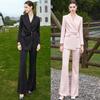 Available 2025: European & American Fashion Embroidered Hollow-Out Suit Jacket & Straight-Leg Pants Set.