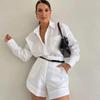 Elevate your casual wardrobe with this chic women's suit set, featuring a long sleeve shirt and matching shorts. Crafted from high-quality spandex, this ensemble offers a comfortable fit with a touch of stretch for ease in movement. The solid pattern adds a versatile and timeless appeal, while practical pockets offer convenience without compromising style. Designed with a sportive flair, this set is perfect for staying trendy and comfortable during any casual outing.