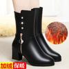 Winter leather women's boots high-heeled model catwalk boots rabbit fur mouth women's cotton boots thick heel cowhide short boots women's wool