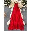 Seaside Vacation Style Sling Dress Women's Summer Mesh Sense of Atmosphere Loose Backless Design Accessible Luxury Beach Dress