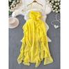 Pure Desire Style Sling Dress Women's Summer Wear New Design Sense Pleated Tube Top Halterneck Waist-Tight Asymmetrical Chiffon Dress