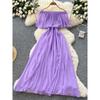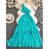 Off-the-Shoulder Photography Beach Dress Fashion Diagonal Collar A- line Travel