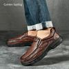 Golden Sapling Men's Casual Shoes Retro Genuine Leather Men Loafers Classics Moccasins Fashion Platform Flats Leisure Work Shoe